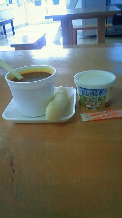 小腹が空いたのでスープカレーとアイスで軽く食事。カレーの具はじゃがいも・ニンジン・玉ねぎ・鮭・カニ(カニは殻が入っていたけど身は…?)。