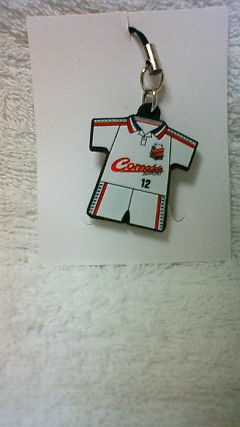ミニタオルマフラーと歴代ユニフォーム型ストラップ。