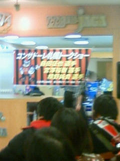会場はポスフールの一角で仕切られている場所ではなかったので(ミニFM局のサテライトスタジオと通路を挟んだフードコートの一角)一般客の邪魔にならないようあまり大きな拍手も出来ず。