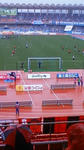 実信君の勝ち越しゴールが決まったときのイノ君の飛び出し(センターライン近くまで来た)。